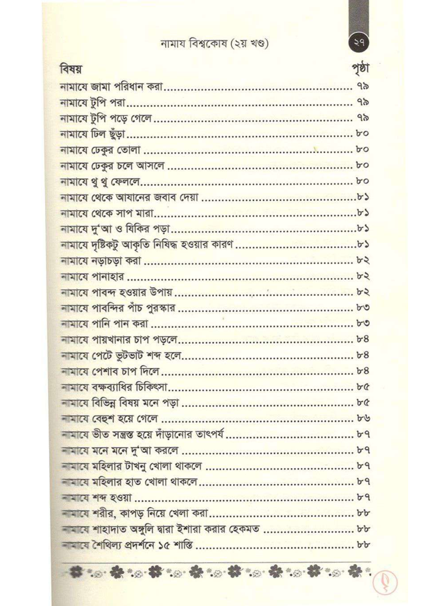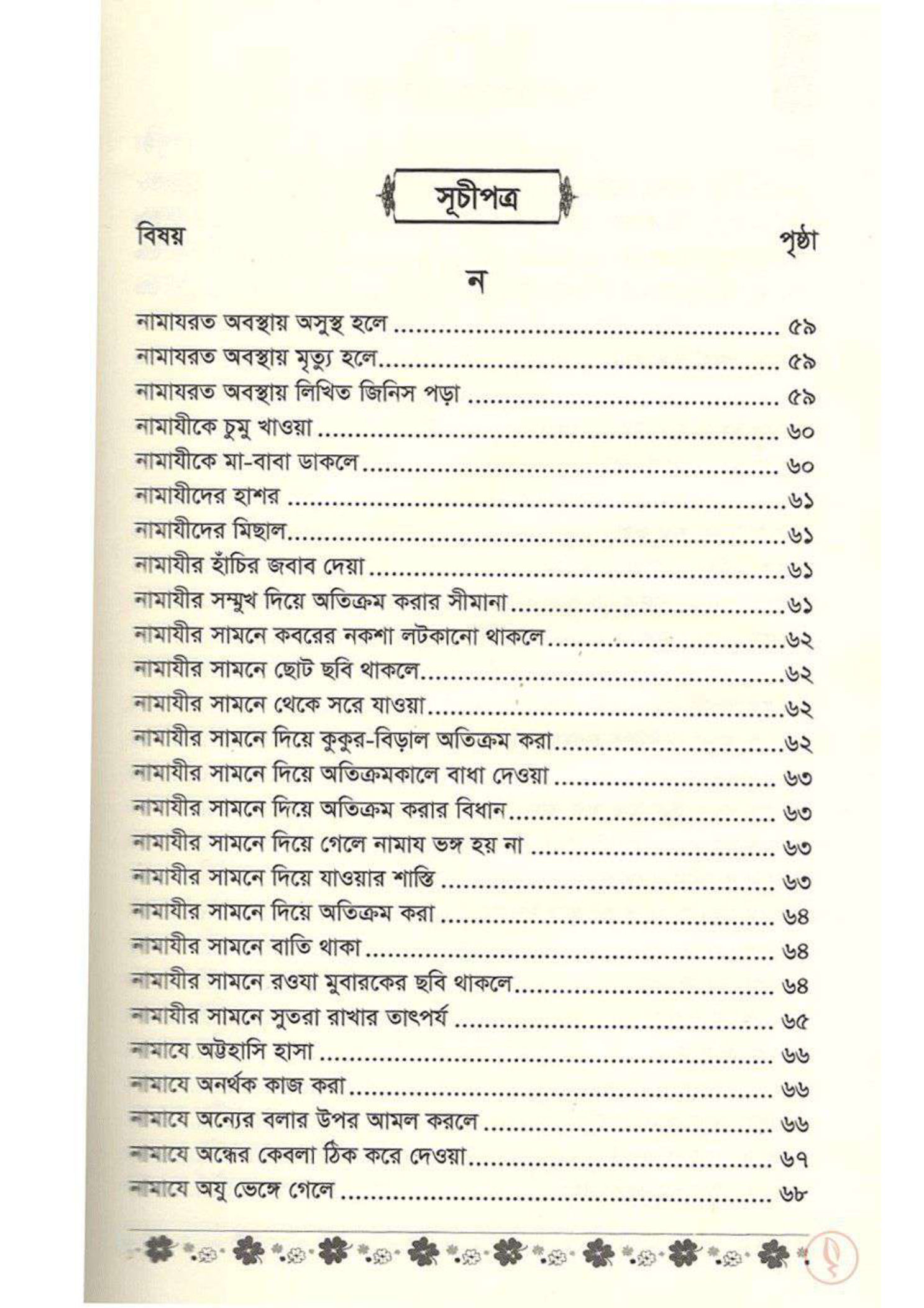 নামায নিয়ে আমাদের বহু প্রশ্ন আছে। আছে নানান খটকা। সব প্রশ্নের উত্তর সব জায়গায় পাওয়া যায় না। দ্বিতীয় কিছু বিষয় আছে লজ্জায় জিজ্ঞেস করতে পারি না। তাই ওযু থেকে শুরু করে সালাম ফেরানোর আগ পর্যন্ত নামাযের যাবতীয় বিষয় নিয়ে এখানে ধরে ধরে আলোচনা করা হয়েছে। কোনো বিষয়ের চুল পরিমাণও বাদ দেননি লেখক। এজন্যই এটিকে নামাযের এনসাইক্লোপিডিয়া বা বিশ্বকোষ বলা যায়। নামায সম্পর্কিত মাসায়েলের দলিলভিত্তিক বৃহত্তর সংকলন। নামাজ সম্পর্ক A-Z জানতে এটাই আমাদের দেশে প্রকাশিত এই পর্যন্ত বৃহৎ এবং বিস্তৃত বই।