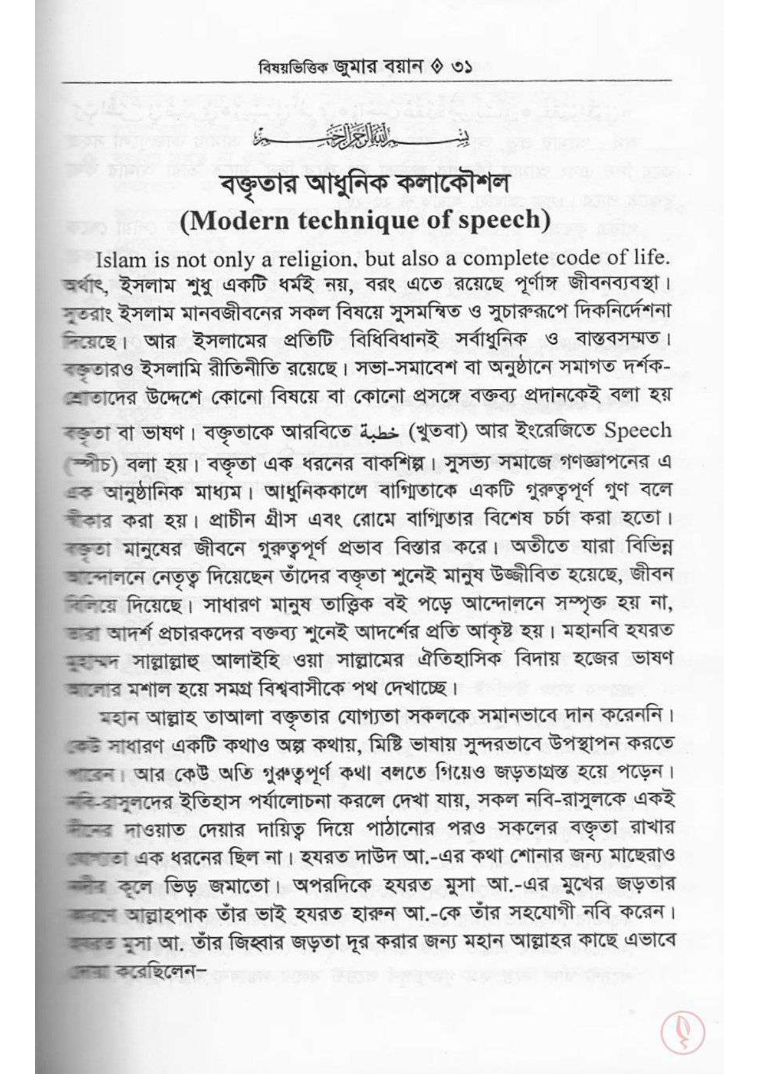 এ পথে যারা নবীন, তাদের জন্য আমাদের ক্ষুদ্র আয়োজন “বিষয়ভিত্তিক জুমার বয়ান”। বইটিতে বিশ্ববিখ্যাত বুজুর্গদের নির্বাচিত রয়ান সংকলন করা হয়েছে। তাঁরা হলেন-