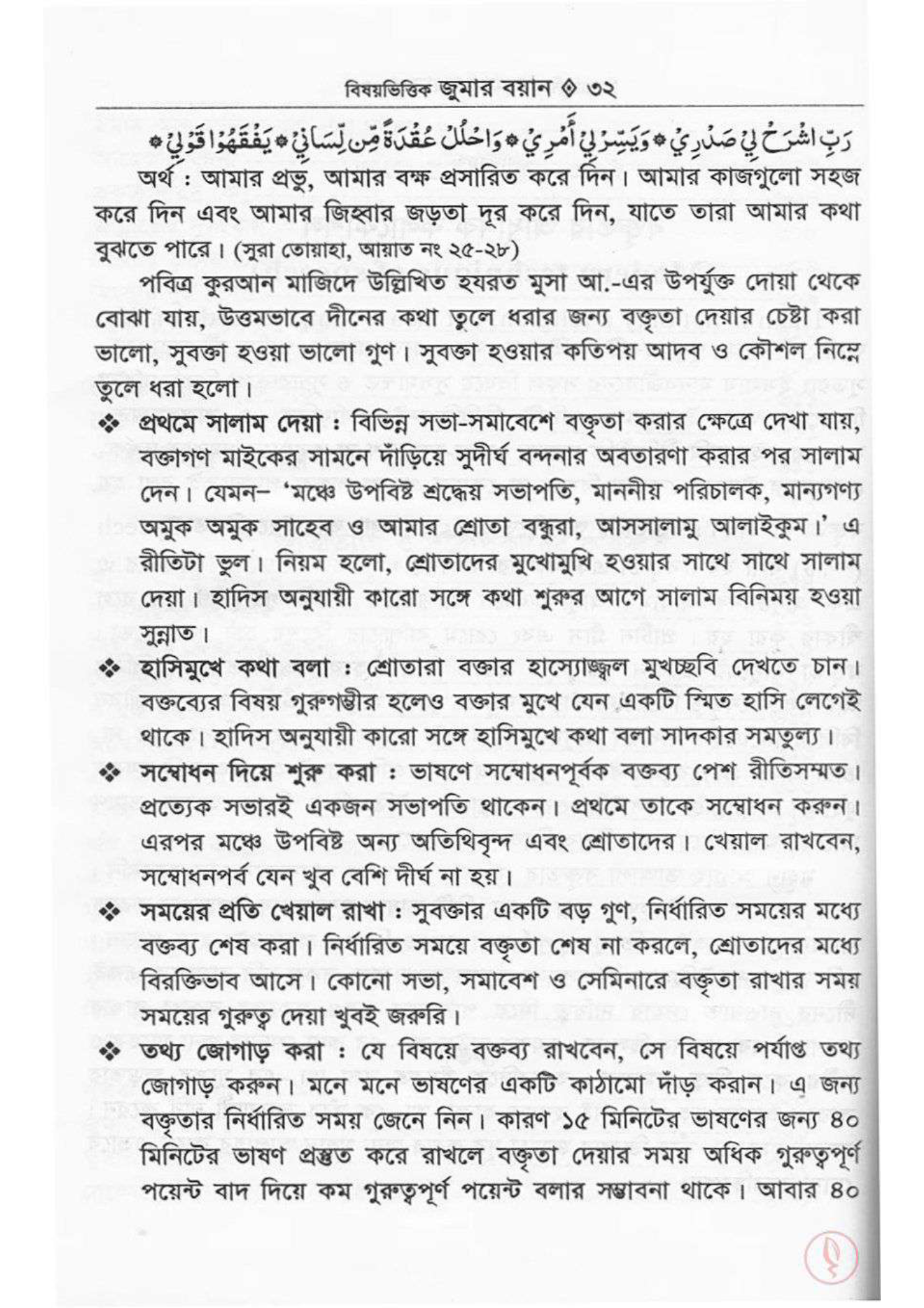 বইটি ইমাম, খতিব, ওয়ায়েজ ও বক্তাদের বয়ান করার উপযোগী করে লেখা হলেও সাধারণ পাঠকও এই বই থেকে ইসলামি শিক্ষা অর্জন এবং প্রয়োজনীয় মাসায়েল জানতে পারবেন, জীবনকে আলোকিত করার উপাদান এবং সিরাতে মুস্তাকিমে চলার পাথেয় পাবেন ইনশাআল্লাহ।